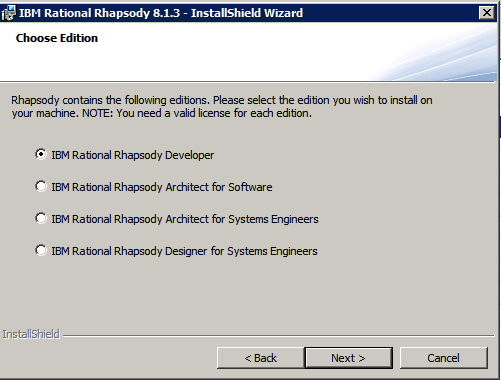 - (Visual Studio): If you want Rhapsody to support C# or Visual Basic, you will need to install Visual Studio before Rhapsody installation.