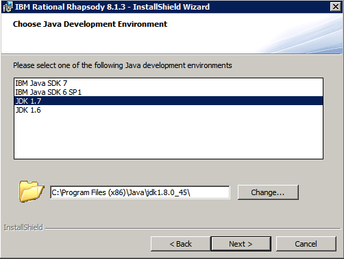- Choose the correct folder with Java JDK or JRE installation (This is required if you choose Java as supported language. You can download JDK from oracle.com and install JDK before you launch Rhapsody installation).
