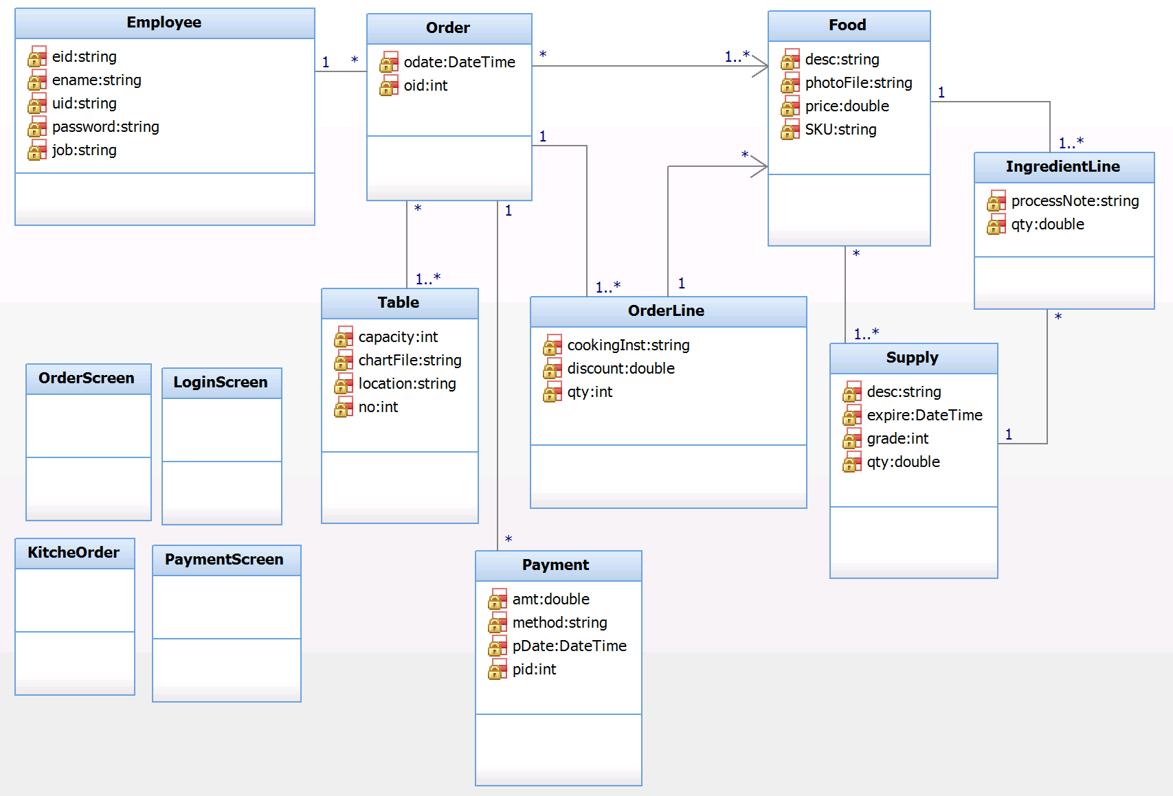 - Create a business class diagram, user interfaces, and possibly a control class (for coordination of complex business logic that involve two or more objects)