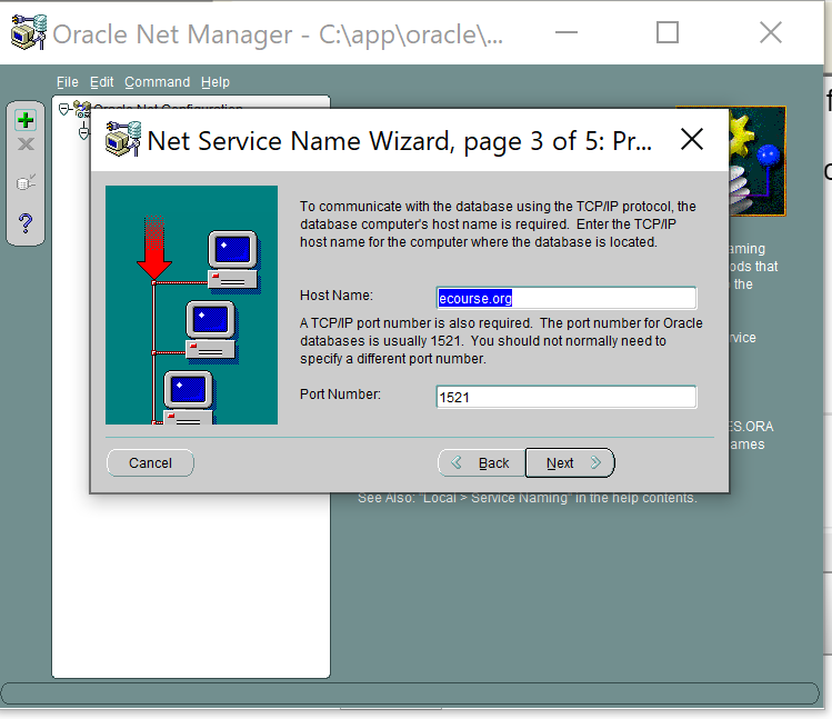 (ADDRESS = (PROTOCOL = TCP)(HOST = ecourse.org)(PORT = 1521))